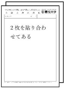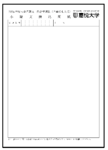 小論文持込用紙は、A4サイズで印刷された小論文持込用紙(所定用紙)1枚までとします。両面への書き込みが可能です。この用紙1枚(両面)に手書きで書かれたメモの持ち込みを許可します。A4サイズで印刷してください。 印刷は【表面】のみに印字してあればよいです。 印字されていない【裏面】にも書き込み可能です。