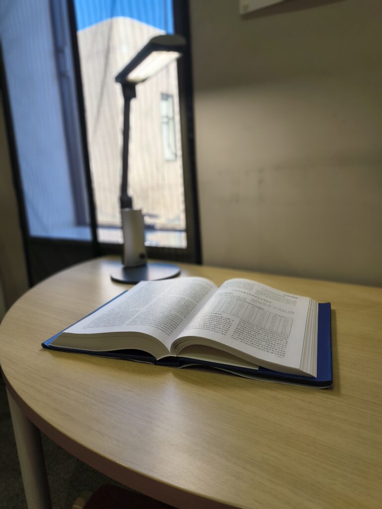 この図書館には10万冊もの本が置いてあり、本を読むことができて、勉強することもできる施設です。経済、経営、会計についての本がたくさんあります。さらに、一人で集中して本を読めて、勉強もできる自習スペースがあり、多くの学生が利用していました。