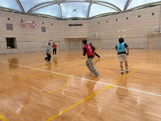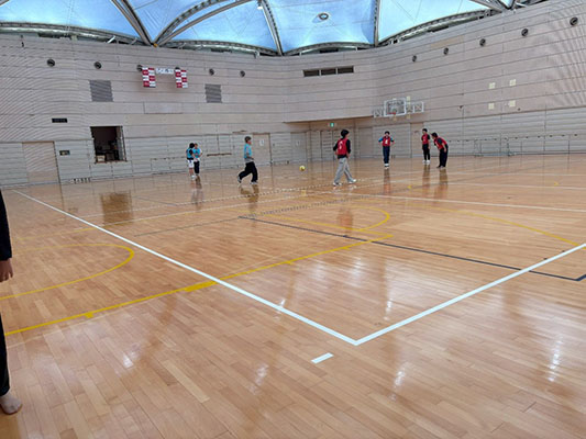 体育館がありました。バレーボール部は全国大会で優勝をしたことがあるらしいです。見学に行ったときは体育の授業で室内サッカーをしていて大学でも運動をすることがあるんだなと感じました。