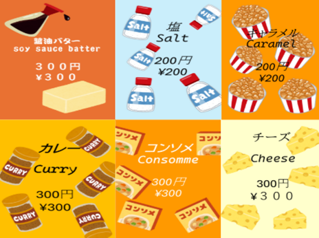今年の飛翔祭は、ポップコーンの出店がなんと3店舗もあると情報を得た取材先のクラスは、他店舗との差別化をどうするか話し合いを始めていました。教員やSA(授業をサポートする学内アルバイトの学生)などから他店舗の情報を集め、それをもとに自店舗の強みを見つけていきました。(このクラスはポップコーンマシンを使ったお家で食べられない、かつ多様なフレーバーを用意するという点で差別化を図るようでした)