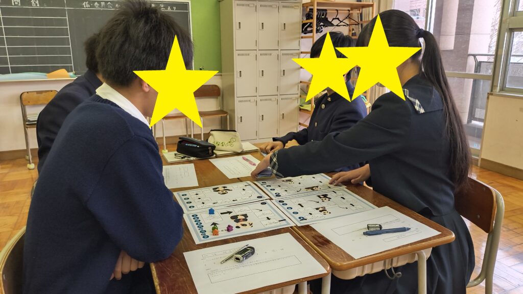 大学生が考案したオリジナルのボードゲームに挑戦。遊びながら、正解のない問いを考え、残りの中学校生活をより充実させるヒントをみんなで見つけました。