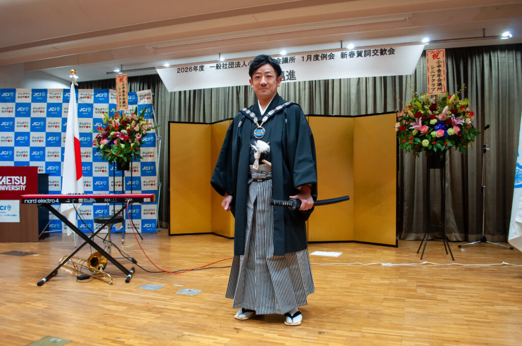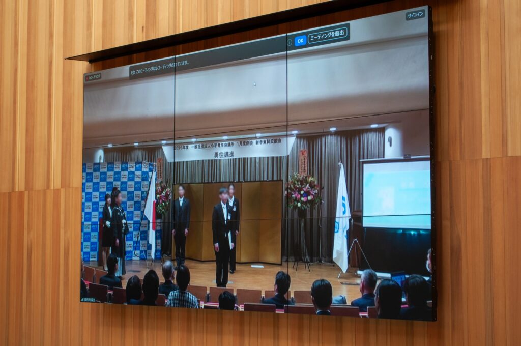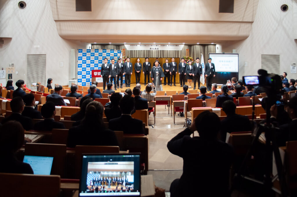 一般社団法人小平青年会議所の2026年度1月度例会 新春賀詞交歓会が、本学カエツホールで開かれました。会場の様子はホワイエのビジョンにも映し出されました。