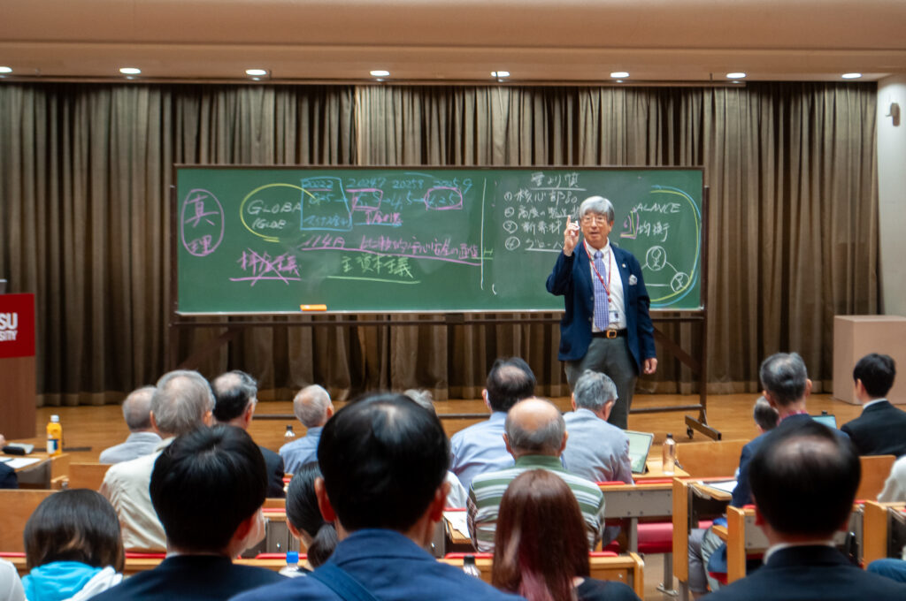 今回は与党の総裁選後のタイミングでの開催となりました。真田副学長からは激動する世界情勢と日本の政治と経済の見通し、未来を見据えた経営指針や混迷の時代を生き抜くための視点を提示いたしました。
